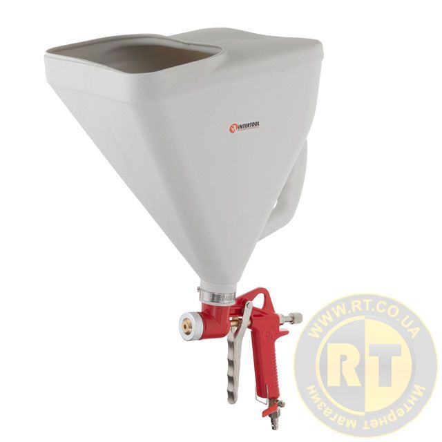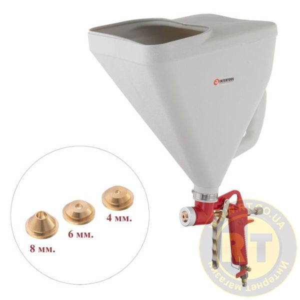 Розпилювач штукатурний пневматичний, форсунки: 4, 6, 8 мм, верхній пластиковий бачок, 9000 мл, 3-6 атм INTERTOOL PT-0403