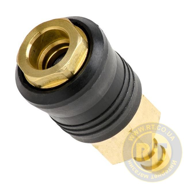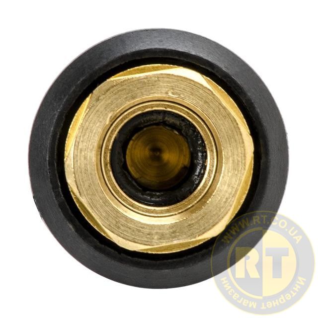З'єднання виготовлене з латуні, має зручну накладку із ABS пластику. Швидкороз'єм PT-1812 з клапаном "мама" універсального типу підходить для швидкороз'ємних з'єднань "папа" будь-яких видів. З іншого боку фітинг оснащений "ялинкою" на шланг, діаметром 8 мм.
