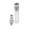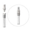 Штирьова частина до швидкороз'ємного з'єднання з пружиною використовується для встановлення на спіральні і прямі повітряні шланги, щоб забезпечити швидке підключення пневмоінструменту до компресора або повітряної магістралі. Також їх використовують для ремонту шлангів з ушкодженнями і для заміни конекторів що вийшли з ладу.