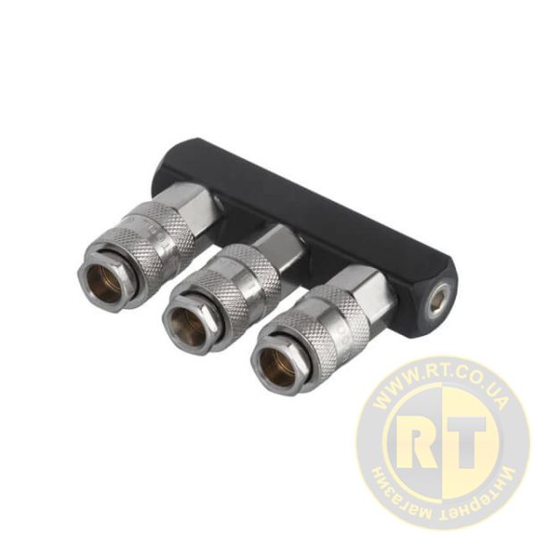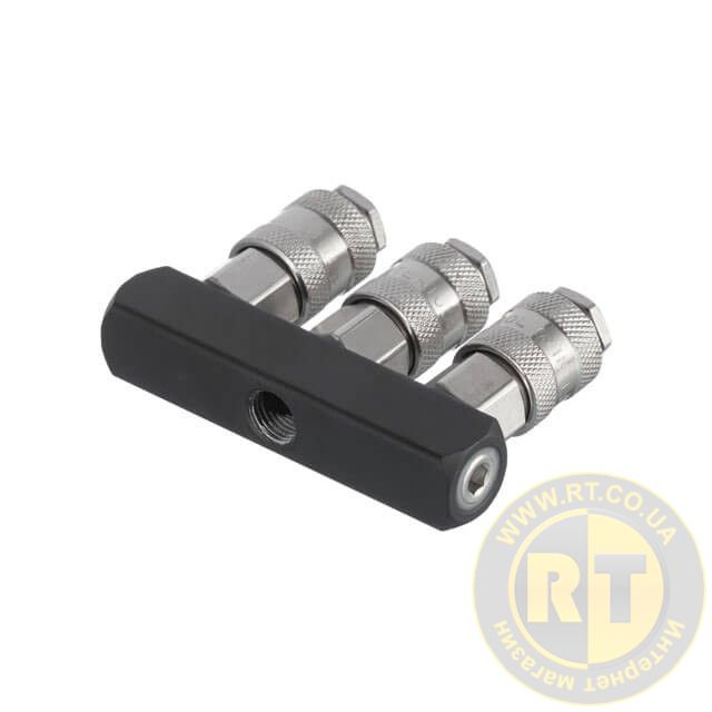 Розгалужувач повітря 1/4 "на 3 виходи, прямий, 10 bar, зі швидкороз'ємними з'єднаннями INTERTOOL PT-1855