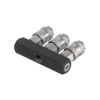 Прямий розгалужувач повітря дозволяє одночасно під'єднати 3-х користувачів повітря і побудувати потужну пневматичну систему з тиском до 10 бар. На вході повітря встановлена різьба 1/4", а на виходах - надійні універсальні швидкороз'ємні з'єднання, які дозволяють легко підключити шланги високого тиску з пневмоінструментом.