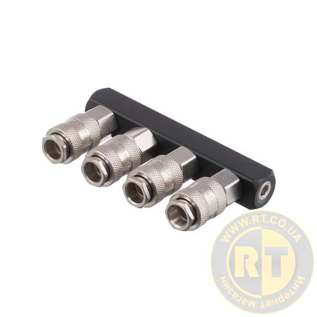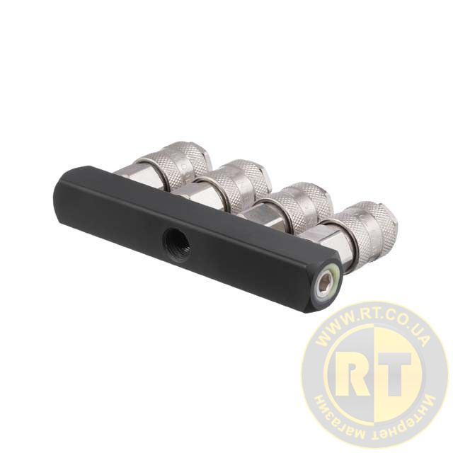 Розгалужувач повітря 1/4 "на 4 виходи, прямий, 10 bar, зі швидкороз'ємними з'єднаннями INTERTOOL PT-1856