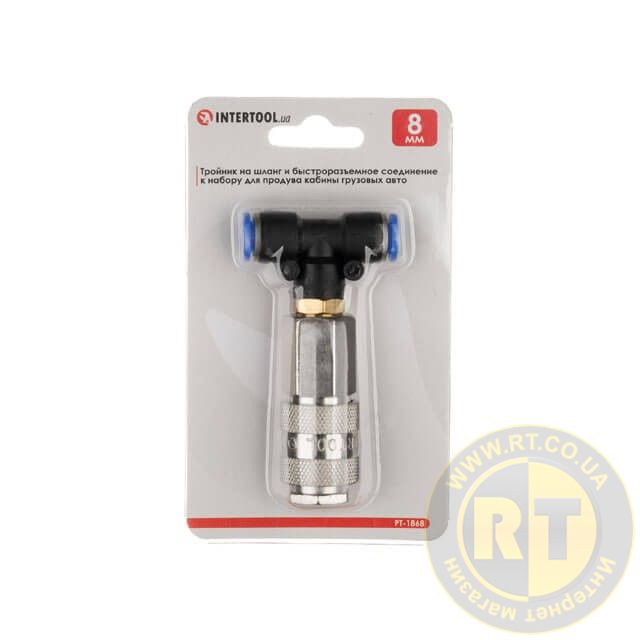 Трійник на шланг 8мм та швидкороз'ємне з'єднання до набору для продувки кабіни вантажних авто INTERTOOL PT-1868