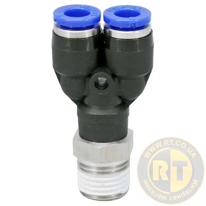 Фітинг Y-подібний для пластикових трубок 10мм із зовнішнім різьбленням 1/2" ROCKFORCE PARTNER RF-SPX10-04