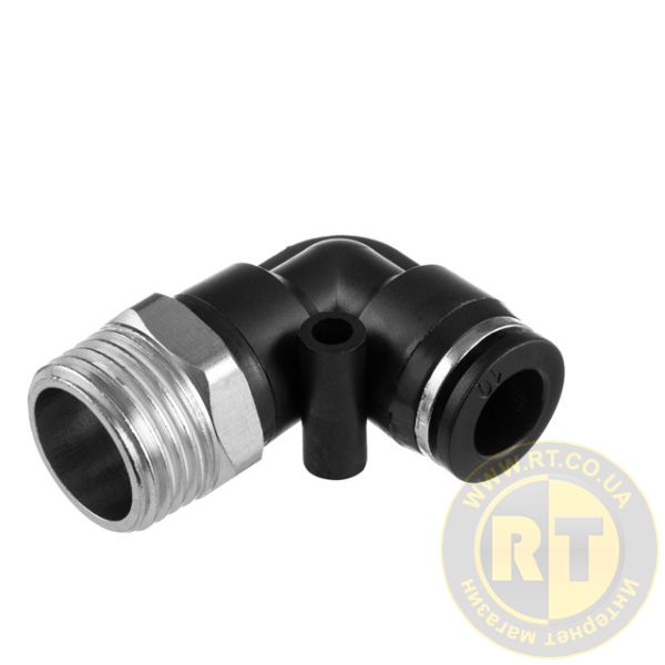 З'єднання цангове L-образне для поліуретанових та ін. шлангів 10 мм, 1/2" зовнішня різьба INTERTOOL PT-2343