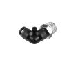 Цангове з'єднання L-подібної форми використовується для створення пневматичних магістралей і для монтажу пневмосистем. Забезпечує повністю герметичне з'єднання різних пневматичних шлангів без пошкодження їхньої поверхні (PU, PE, PA) - поліуретанових, поліетиленових, поліамідних тощо.