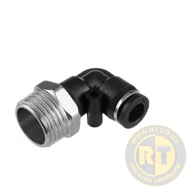 З'єднання цангове L-образне для поліуретанових та ін. шлангів 8 мм, 1/2" зовнішня різьба INTERTOOL PT-2342