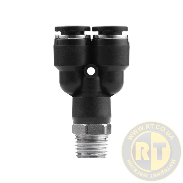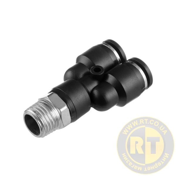 З'єднання цангове Y-образне для поліуретанових та ін. шлангів 8×8 мм, 1/4" зовнішня різьба INTERTOOL PT-2377
