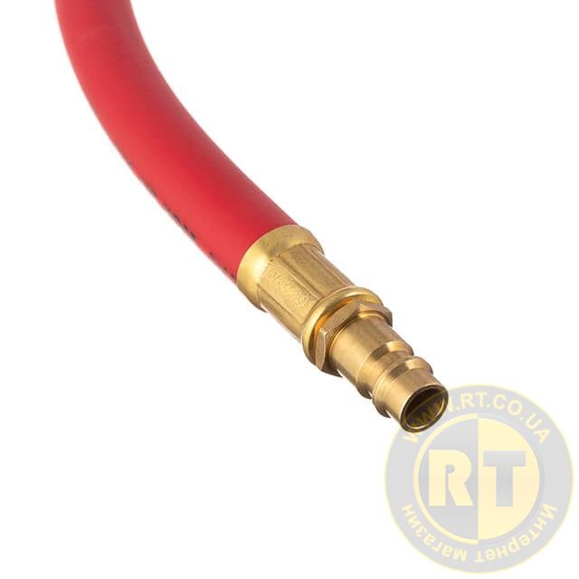 Температура експлуатації від -20 до +60 °С. Міцне армування та товсті стінки забезпечують стабільну роботу шланга з тиском повітря до 20 атм.