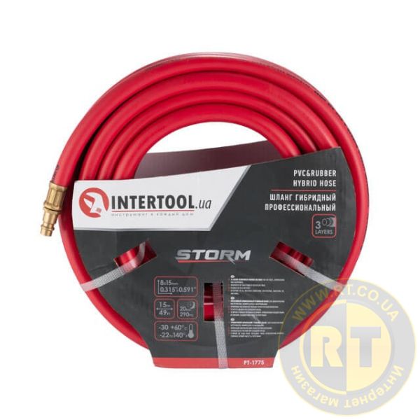 Шланг гібридний, професійний, 20 атм, 8*15мм, 15м з швидкороз'ємними латунними з'єднаннями, STORM INTERTOOL PT-1775