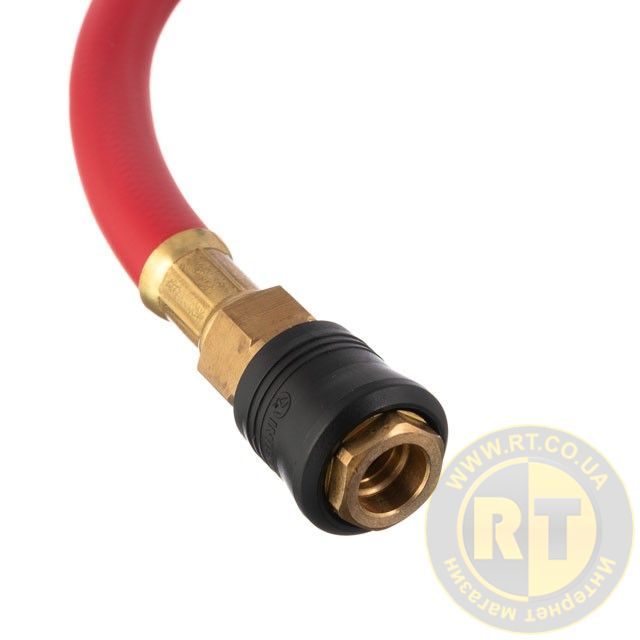 Шланг легко підключається в систему за допомогою швидкороз'ємних з'єднань європейського типу, вони герметичні і дозволяють швидко підключити пневмоінструмент до компресора.
