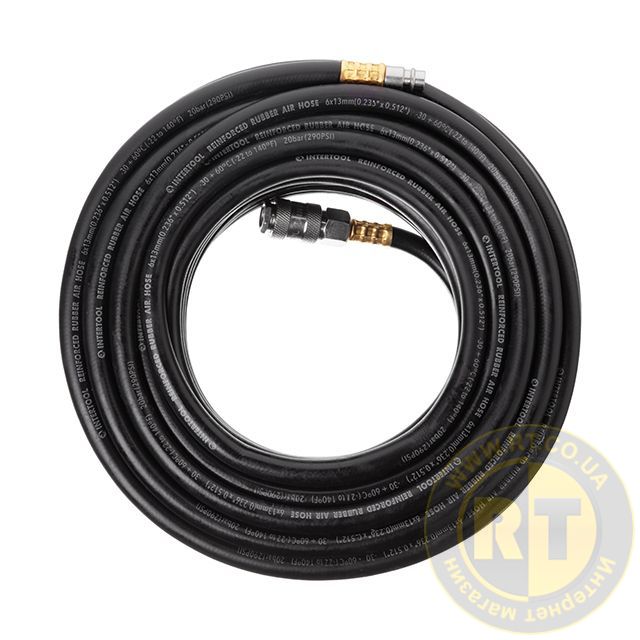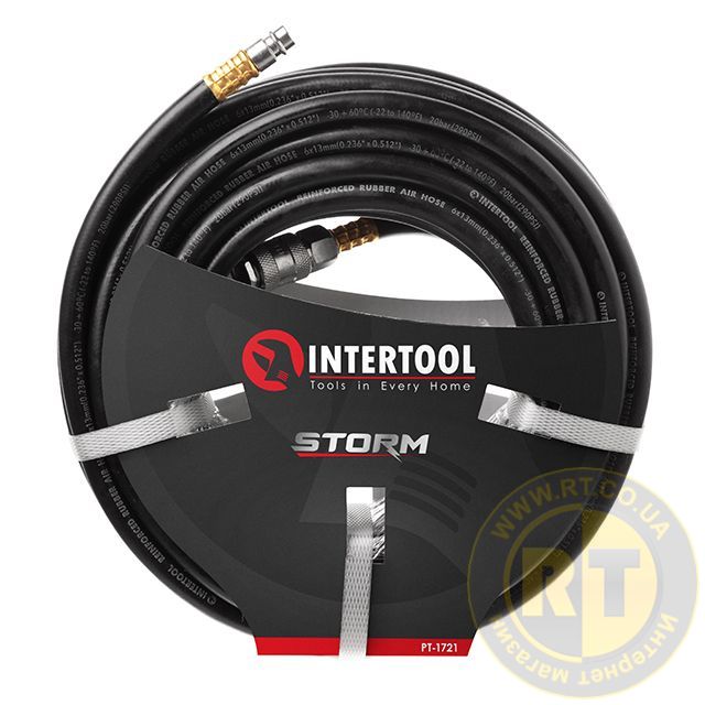 Шланг гумовий повітряний, армований, до 20 атм, 6×13 мм, 20 м, зі швидкороз'ємними з'єднаннями, STORM INTERTOOL PT-1721