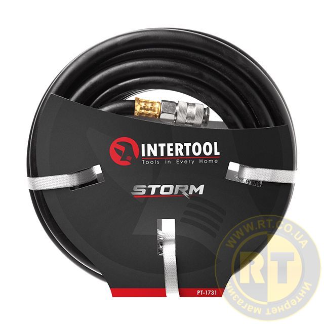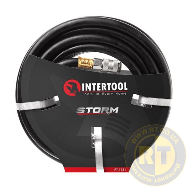 Шланг гумовий повітряний, армований, до 20 атм, 8×15 мм, 10 м, зі швидкороз'ємними з'єднаннями, STORM INTERTOOL PT-1731