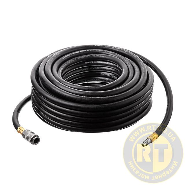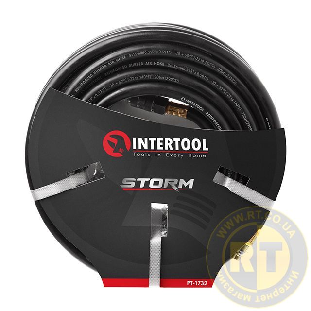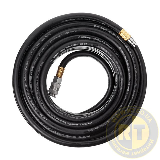 Шланг гумовий повітряний, армований, до 20 атм, 8×15 мм, 20 м, зі швидкороз'ємними з'єднаннями, STORM INTERTOOL PT-1732