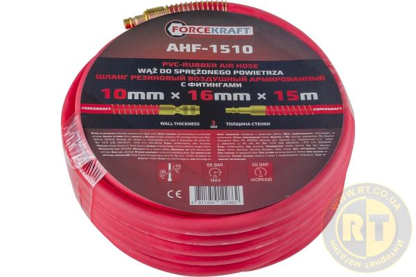 Шланг гумовий повітряний армований з фітингами 10мм x 16мм x 15м FORCEKRAFT FK-AHF-1510