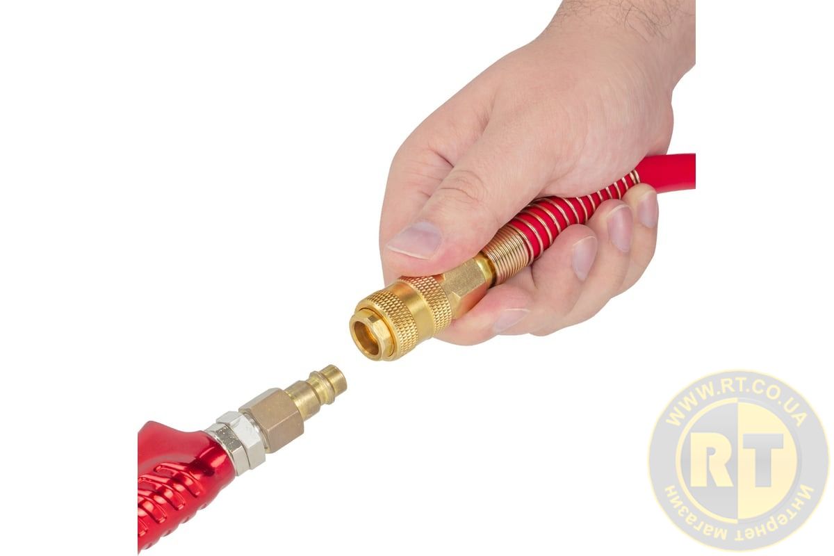 - Робочий тиск 22 бар і максимальний тиск 65 бар дозволяють використовувати шланг з більшістю пневмоінструментів.