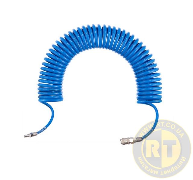 Шланг спіральний поліуретановий 6,5×10 мм, 10 м, зі швидкороз'ємними з'єднаннями INTERTOOL PT-1711