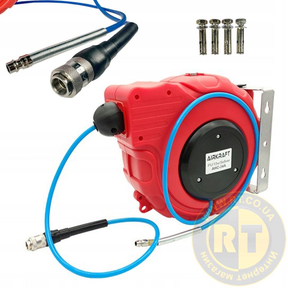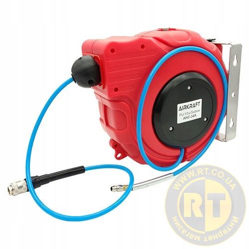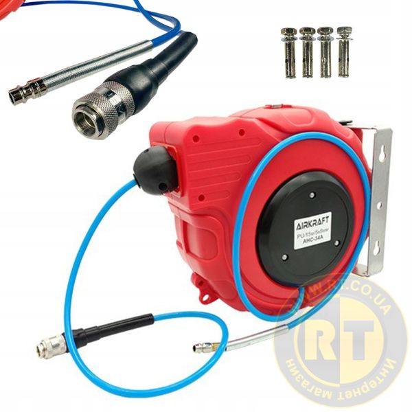 Шланг повітряний для компресора на котушці 5x8мм, 15м швидкознімний AIRKRAFT AHC-34A