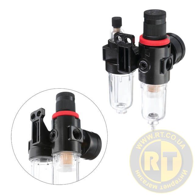 Блок підготовки повітря з редуктором необхідний для безперебійної роботи пневмоінструменту та обладнання. Вбереже ваш інструмент від забруднення, передчасного зносу та подовжить строк служби. Складається із фільтра з редуктором та лубрикатора.