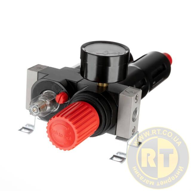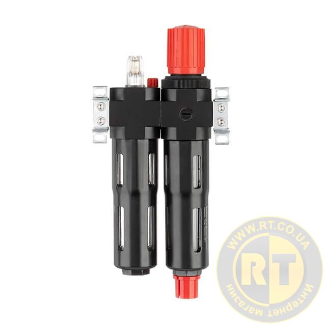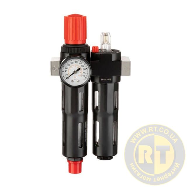 Блок підготовки повітря 1/4", професійний, 5 мкм, до 16 атм, до 850 л/хв, металевий захист колби, регулятор тиску, STORM INTERTOOL PT-1435