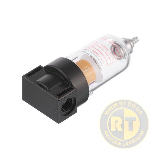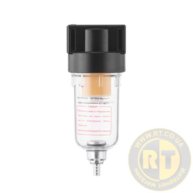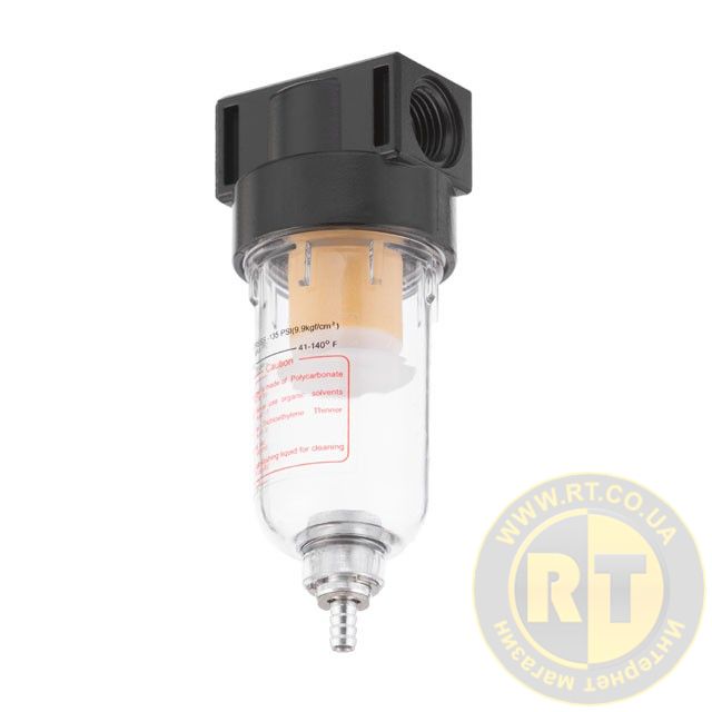 Рекомендовано встановлювати фільтр якомога ближче до споживача повітря або безпосередньо на виході з компресора. До комплекту не входять перехідники. Фільтр має 2 внутрішні різьби для підключення, діаметром 1/4".