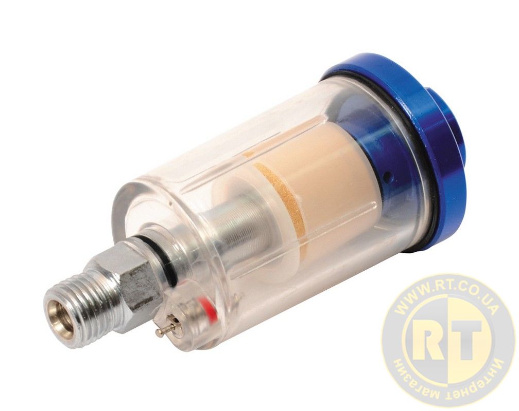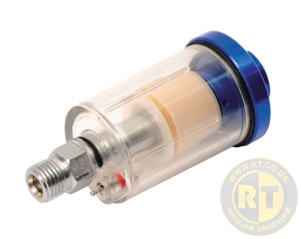 Мініфільтр повітряний призначений для установки безпосередньо на пістолет фарбувальний, забезпечуючи очищення повітря від вологи, пилу та олії перед подачею в інструмент. Фільтруючий елемент із точністю 5 мікрон гарантує чисте повітря, що позитивно впливає на якість фарбування.