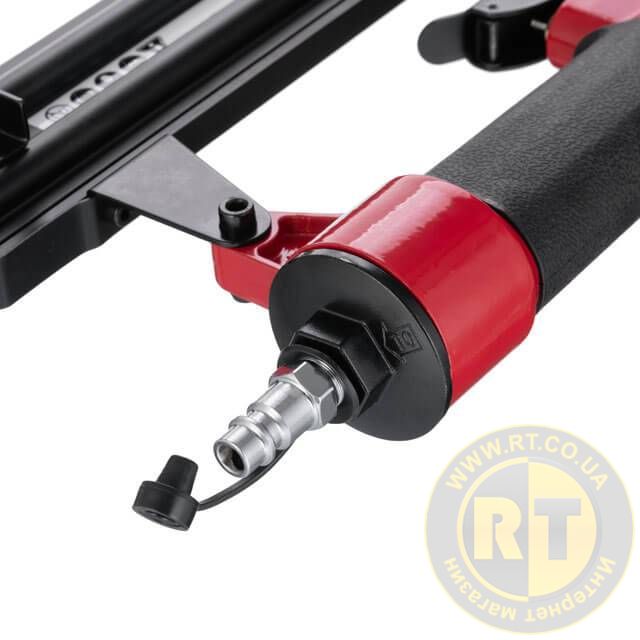 Пневмостеплер має дуже компактну та легку конструкцію, вага всього 1,3 кг не перевантажує руки, тому ним комфортно працювати протягом тривалого часу. Прогумована ручка забезпечує відмінну фіксацію інструмента в руці.