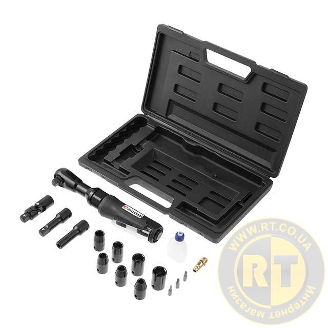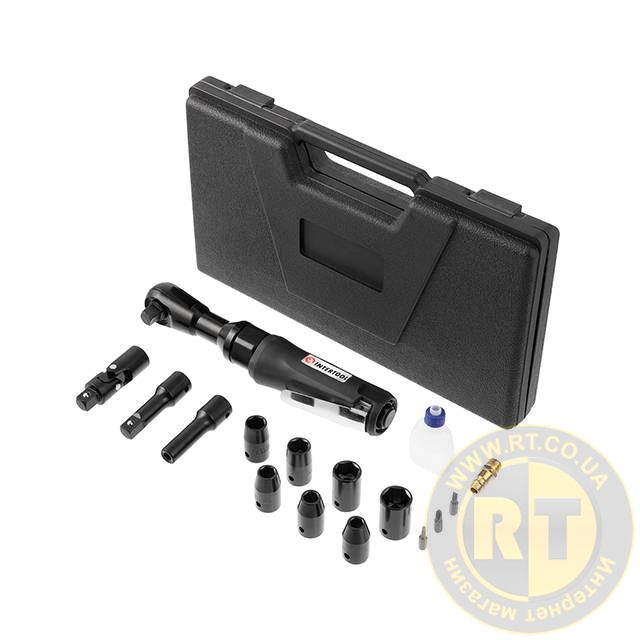 Гайковерт кутовий пневматичний 1/2", до 6,3 бар, 69 Нм, 160 об/хв, 120 л/хв, набір головок, кейс INTERTOOL PT-1110