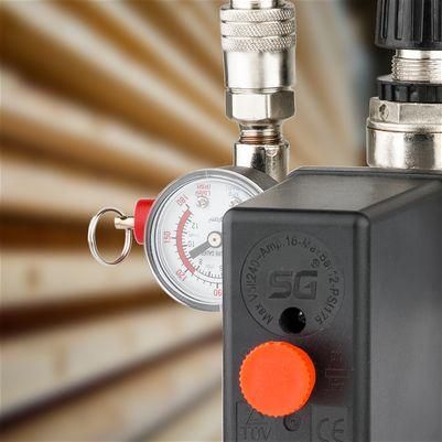 Прессостат, або реле тиску (блок управління), призначений контролю тиску в ресивері компресора за заданими параметрами в автоматичному режимі. Використовується для однофазних повітряних поршневих компресорів з напругою 220 В максимальною потужністю до 3 кВт.