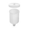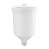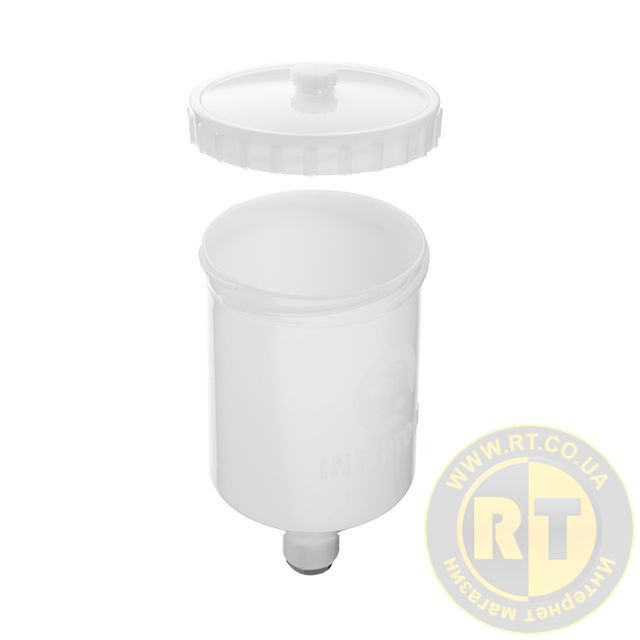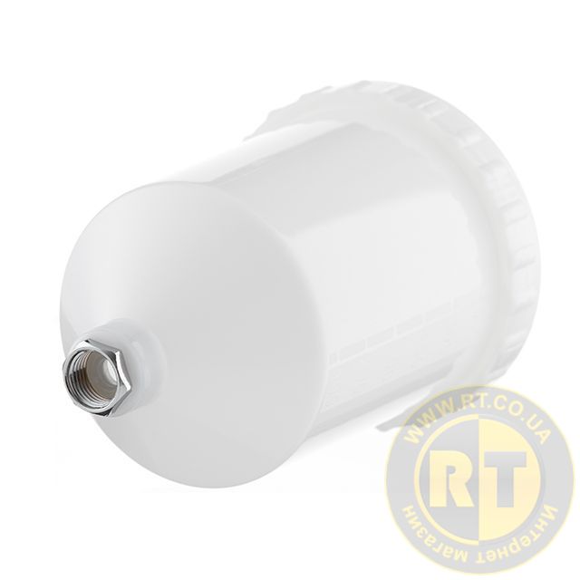 Цей пластиковий бачок призначений для використання з пістолетами систем розпилення HVLP, LVLP, HP, обладнаний внутрішньою різьбою M16x1,5. Має компактні розміри, що робить його ідеальним вибором для точних та дрібних робіт, або для робіт у важкодоступних місцях. Об'єм бачка становить 600 мл, вміщує достатню кількість матеріалу для виконання різноманітних фарбувальних робіт.