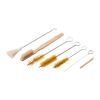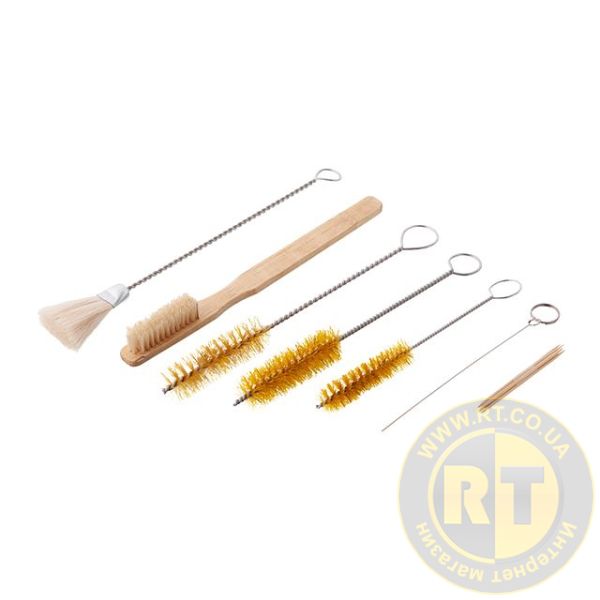 У комплект входять три щітки різних розмірів з жорсткою щетиною для прочищення каналів подачі фарби. Також передбачені голки для прочищення отворів сопел, завдяки чому відбувається якісне та дбайливе очищення від фарби. У наборі також є щітка з дерев'яною ручкою та віяловий широкий пензлик загального призначення для чищення корпусу пістолета.