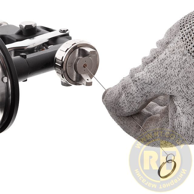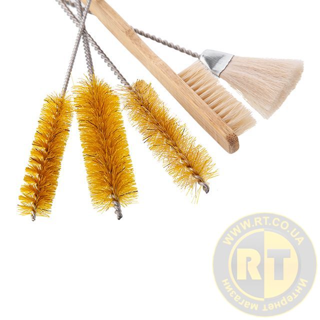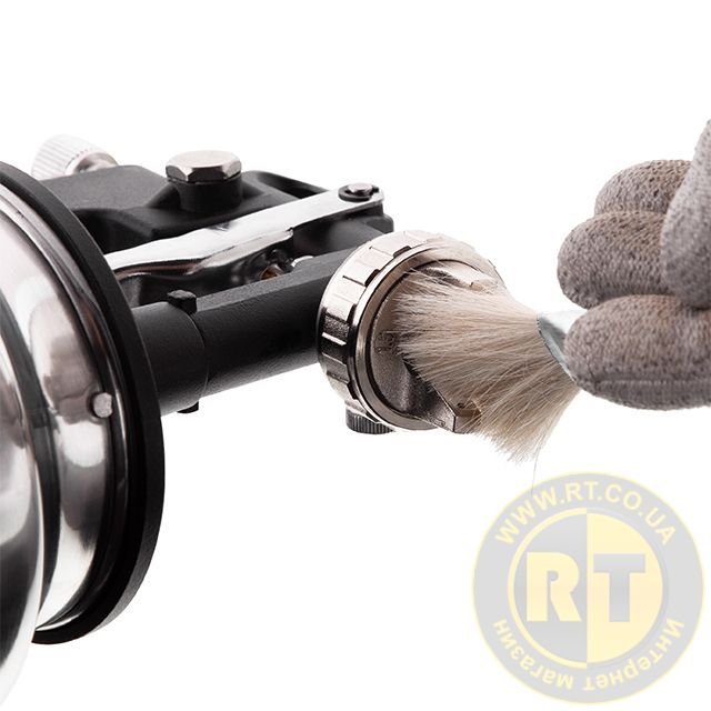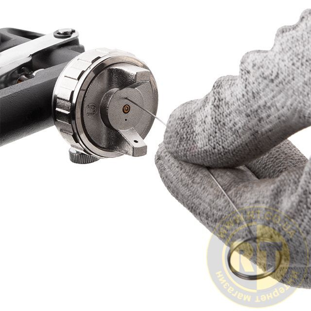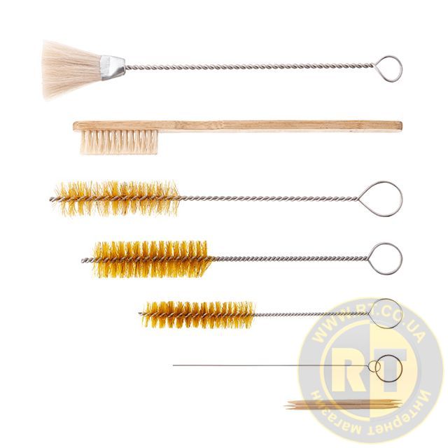 У комплект входять три щітки різних розмірів з жорсткою щетиною для прочищення каналів подачі фарби. Також передбачені голки для прочищення отворів сопел, завдяки чому відбувається якісне та дбайливе очищення від фарби. У наборі також є щітка з дерев'яною ручкою та віяловий широкий пензлик загального призначення для чищення корпусу пістолета.