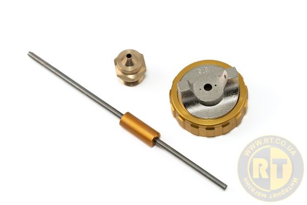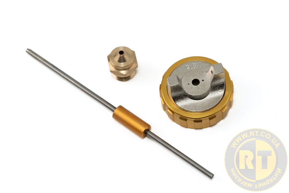 Форсунка змінна для пневмопістолета для фарбування HP Ø 2.5 мм - це комплект, що включає дюзу, повітряну голівку та голку, призначений для якісного та рівномірного нанесення матеріалів з підвищеною в'язкістю.