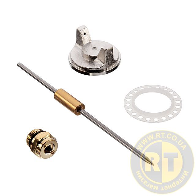 Набір форсунки PT-2004 дозволяє відновити роботу фарбопульта, а також може збільшити його функціонал завдяки діаметру форсунки 1,5 мм. Набір спеціально розроблений для фарбопультів системи HP. Цей комплект включає важливі елементи: дюзу, повітряну головку, голку і прокладки, надаючи повний інструментарій для ефективного нанесення фарби.