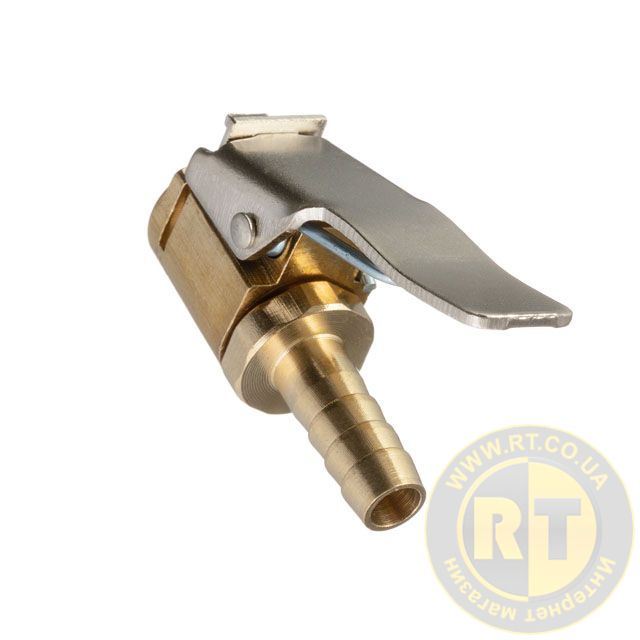 Наконечник має затискач, що герметично фіксується на ніпелі камери та не пропускає повітря під час накачування. Зносостійкий, стійкий до корозії корпус з латуні забезпечує максимально тривалий строк служби. Наконечники можна придбати також в комплектації 50 од., під артикулом PT-5006.