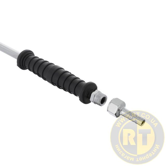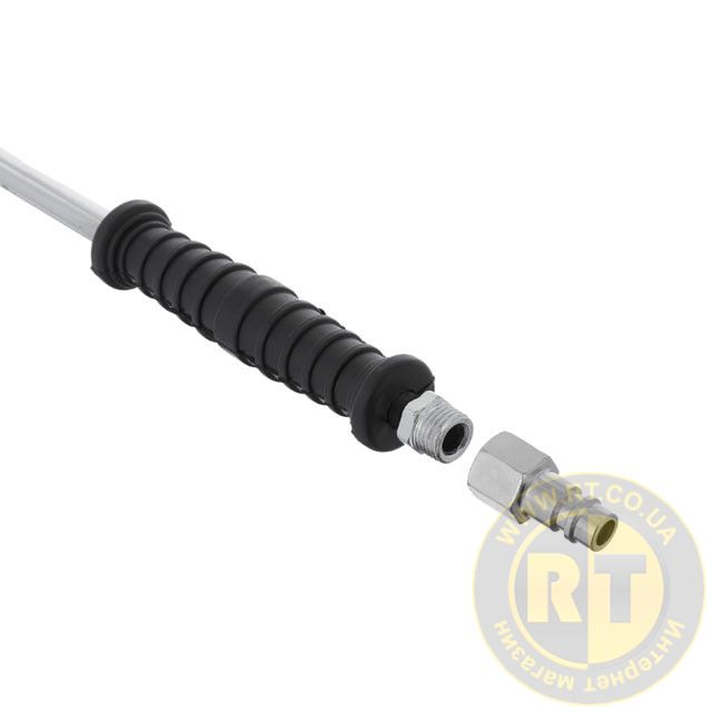 Подовжувач повністю виконаний з металу, це міцний та зносостійкий в експлуатації інструмент. Оснащений зручною пластиковою ручкою для комфортної роботи оператора. Для підключення шланга в комплекті передбачено конектор типу "ялинка" 8 мм та фітинг для швидкороз'ємного з'єднання.
