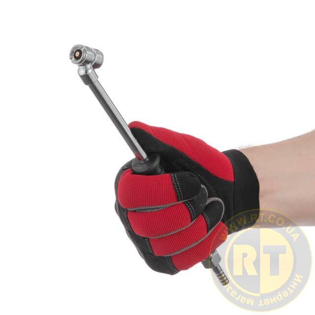 Подовжувач для накачування здвоєних та звичайних коліс, двосторонній, з рукояткою, два типи з’єднання (шланг 8 мм + швидкороз’ємне) INTERTOOL PT-0515