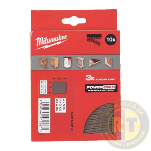 Набір сіток шліфувальних PG Mesh HL MILWAUKEE, 115х107мм, (10шт)