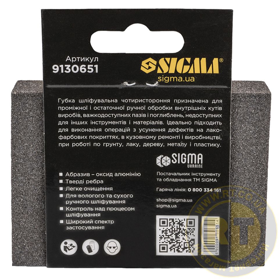Губка шліфувальна чотиристороння 100×70×25мм P80 SIGMA 9130651