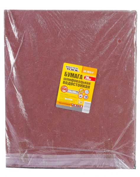 Папір шліфувальний водостійкий Р150 230х280 мм 20 шт MASTERTOOL 08-2615-Р
