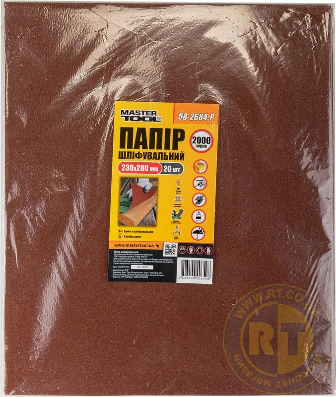 Папір шліфувальний водостійкий Р2000 230х280 мм 20 шт MASTERTOOL 08-2684-Р