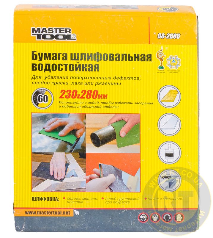 Папір шліфувальний водостійкий Р60 230х280 мм MASTERTOOL 08-2606