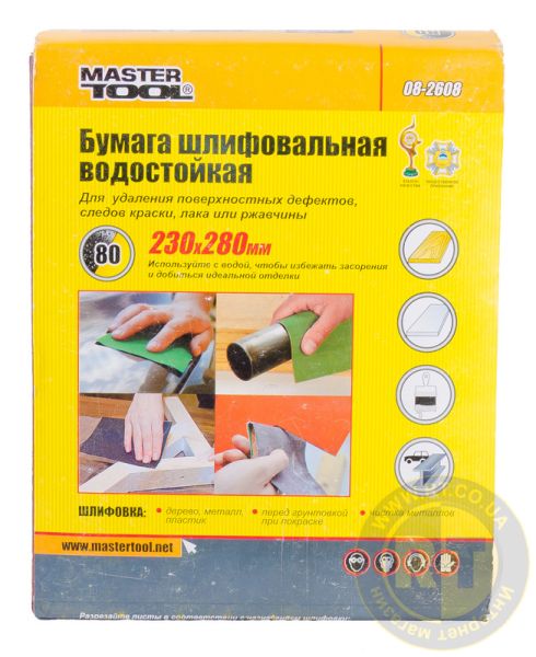 Папір шліфувальний водостійкий Р80 230х280 мм MASTERTOOL 08-2608