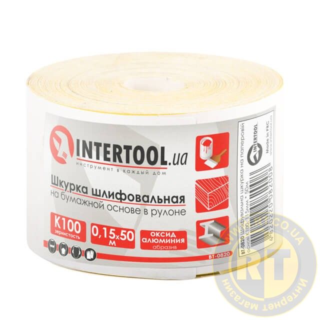 Шкурка шліфувальна, паперова основа, К100, 115 мм × 50 м INTERTOOL BT-0820