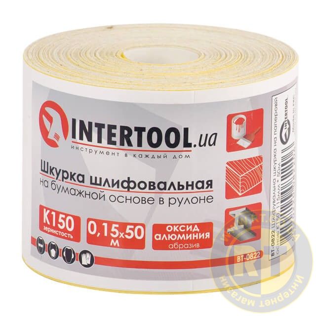 Шкурка шліфувальна, паперова основа, К150, 115 мм × 50 м INTERTOOL BT-0822