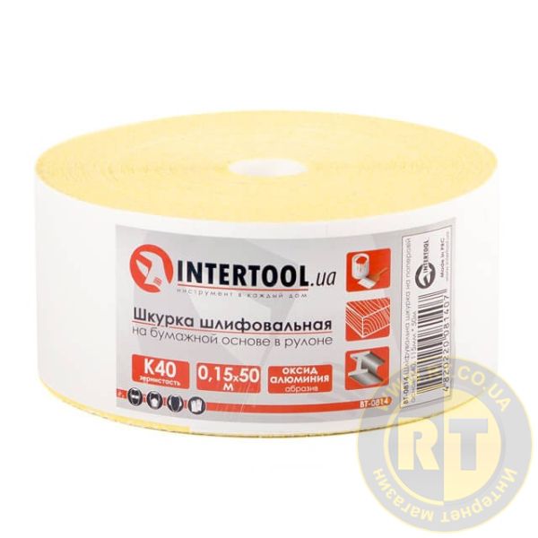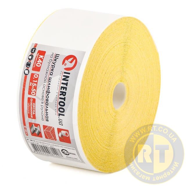 Шкурка шліфувальна, паперова основа, К40, 115 мм × 50 м INTERTOOL BT-0814