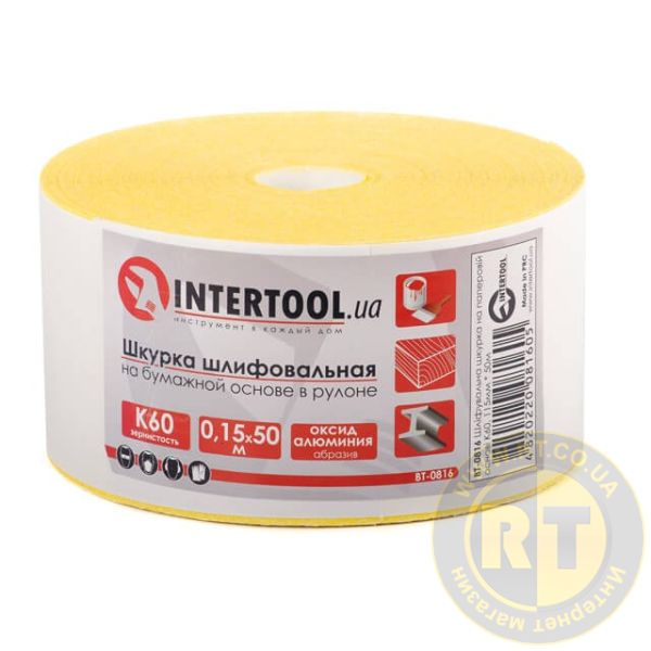 Шкурка шліфувальна, паперова основа, К60, 115 мм × 50 м INTERTOOL BT-0816