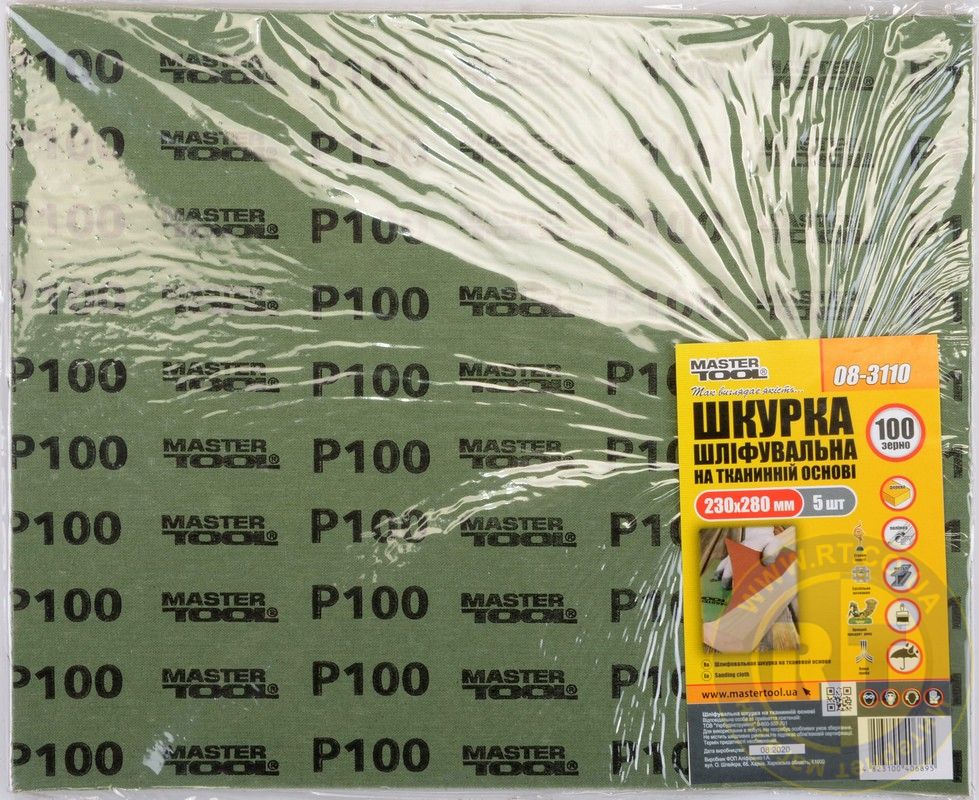 Шкурка шлифовальная на тканевой основе Р100 230х280 мм 5 шт MASTERTOOL 08-3110