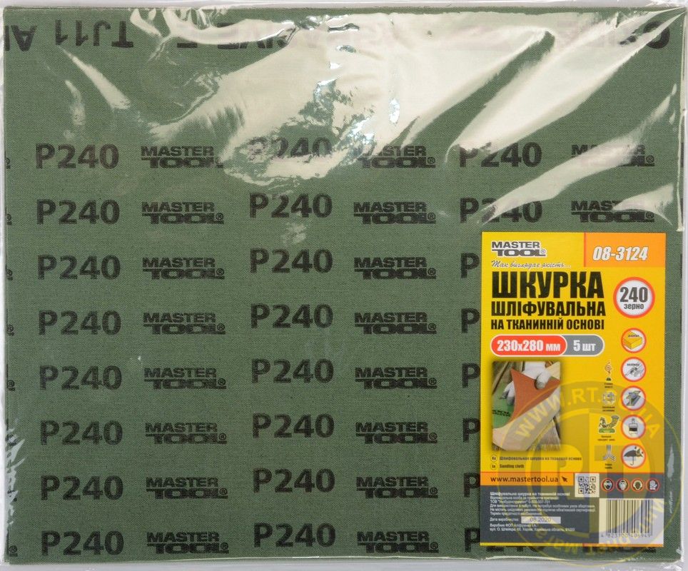 Шкурка шлифовальная на тканевой основе Р240 230х280 мм 5 шт MASTERTOOL 08-3124
