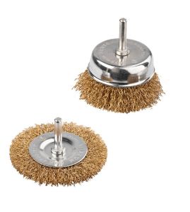 Набір щіток 2 шт - торцева/дискова зі стрижнем ¼" Ø 75/100 мм з латунованого рифленого дроту MASTERTOOL 19-9200
